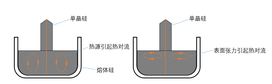在生长的过程中,单晶硅棒需要不停的旋转,而下面的坩埚反方向旋转,单晶硅棒一边旋转一边缓慢提起。之所以要旋转是因为熔体内溶液温度存在温差会形成自然对流,并且晶体在提升的过程中也会引起对流,因此,旋转的过程可以使温度更为均匀,并且也利于杂质的均匀分布。