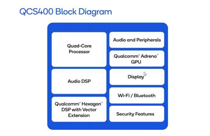 QCS400系列芯片共有4个版本:QCS403、QCS404、QCS405、QCS407。其中403/404分别搭载双核/四核CPU,仅用于音频。而QCS405除了四核CPU之外,还搭载四核AI CPU、GPU和双DSP。QCS407是405的强化版本,能够支持32个频道的音频,其他芯片支持12个频道。
