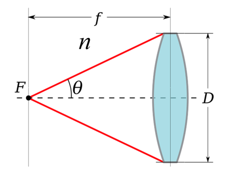 数值孔径(n为折射率)| 图源Searchmedia - Wikimedia Commons
