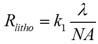 R 为光刻系统可分辨的图形周期;k1为工艺因子 。
