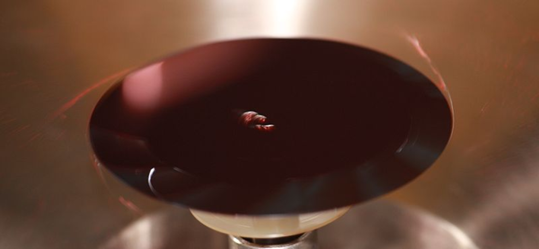 旋涂在硅晶片上的光刻胶(靠旋转离心力均匀覆盖)| 图源Searchmedia - Wikimedia Commons