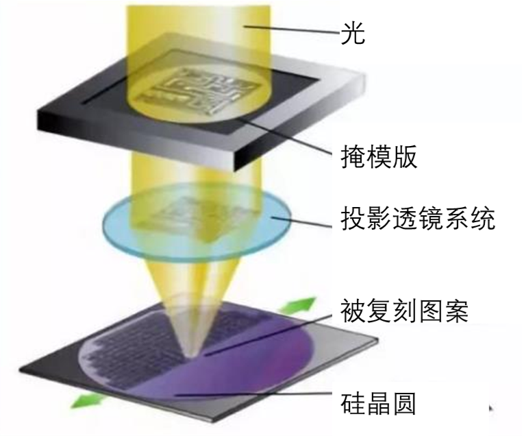 芯片制造中光刻是最复杂、昂贵且关键的工艺,通常使用投影式光刻系统将掩模版的电路结构图投射到硅晶片的表面 。