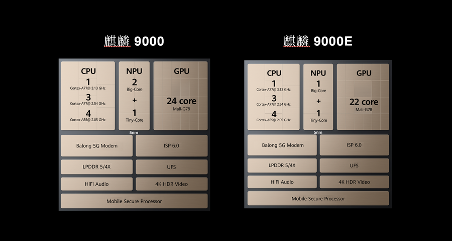 采用5nm制程工艺,让小小的麒麟9000拥有超过153亿个晶体管。可能普通消费者对这一概念感知不强,那我们举个例子。同样是5nm的芯片,iPhone12系列搭载的A14芯片晶体管数量是118亿。由此可见,麒麟9000在芯片的设计上确实非常出色。
