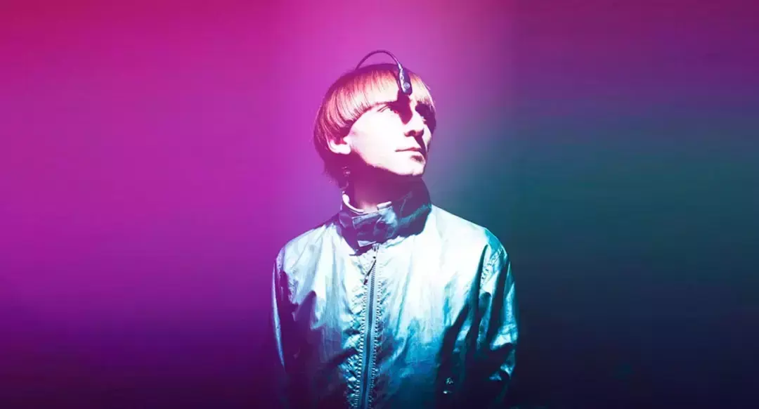 他选择在大脑后面植入芯片,芯片连接着他头上这个光线传感器,实时地将身边的光线转换成声音 。