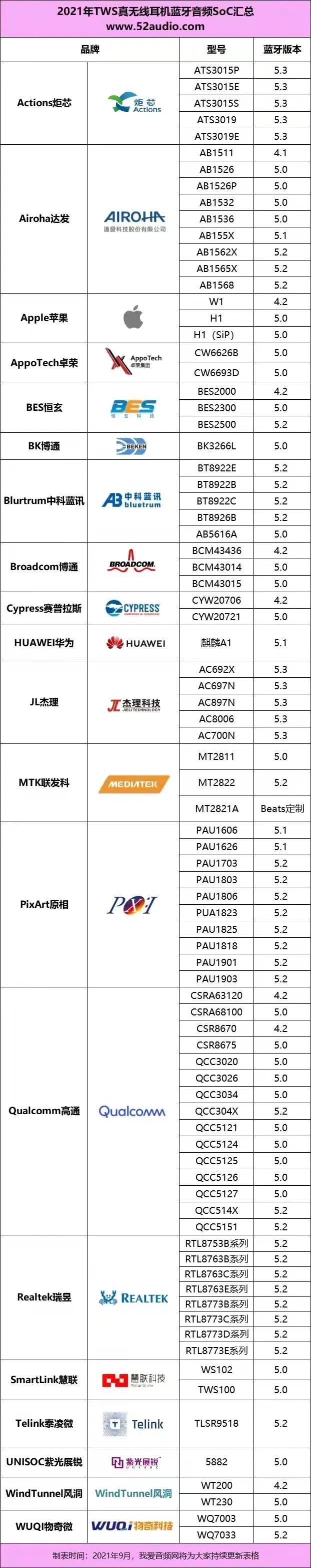 蓝牙耳机之所以难买就是信息不透明,产品介绍不会告诉你什么方案,所以我们归纳所有蓝牙耳机芯片进行比较